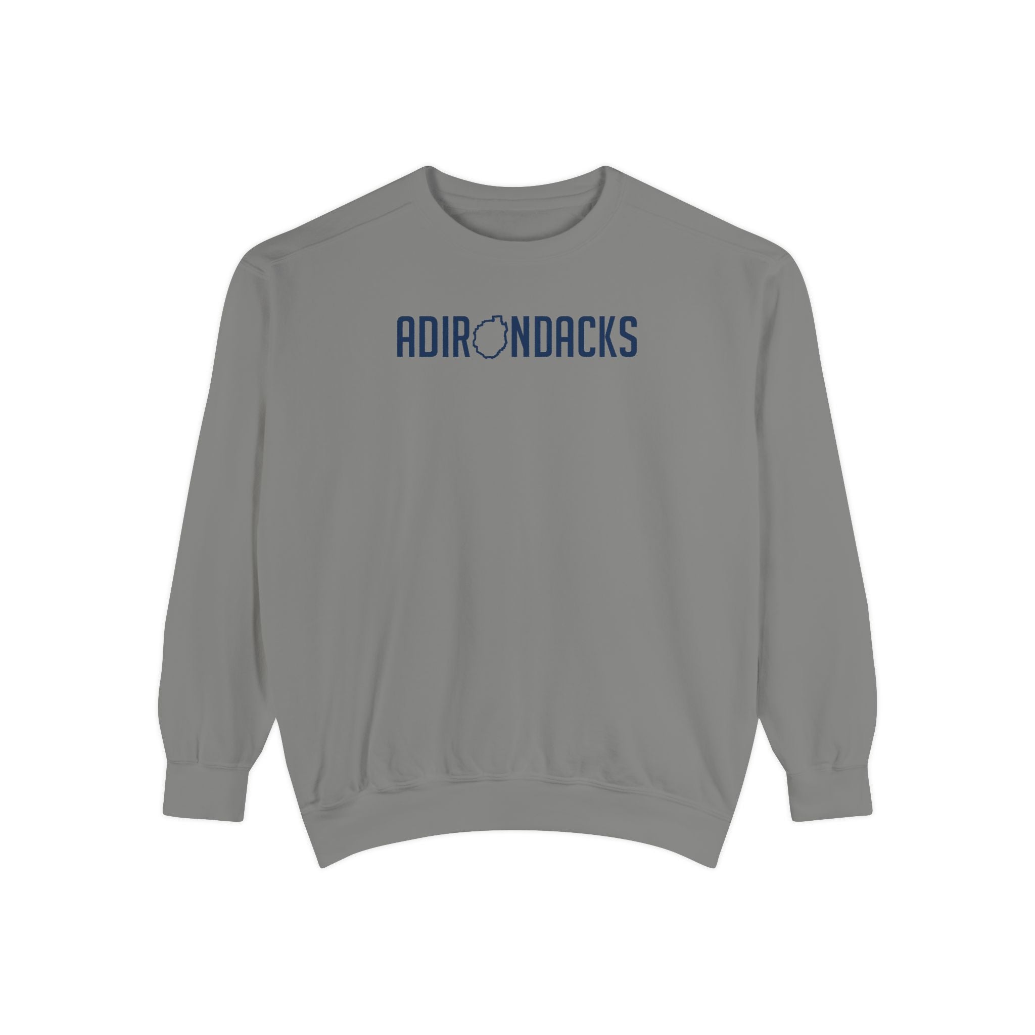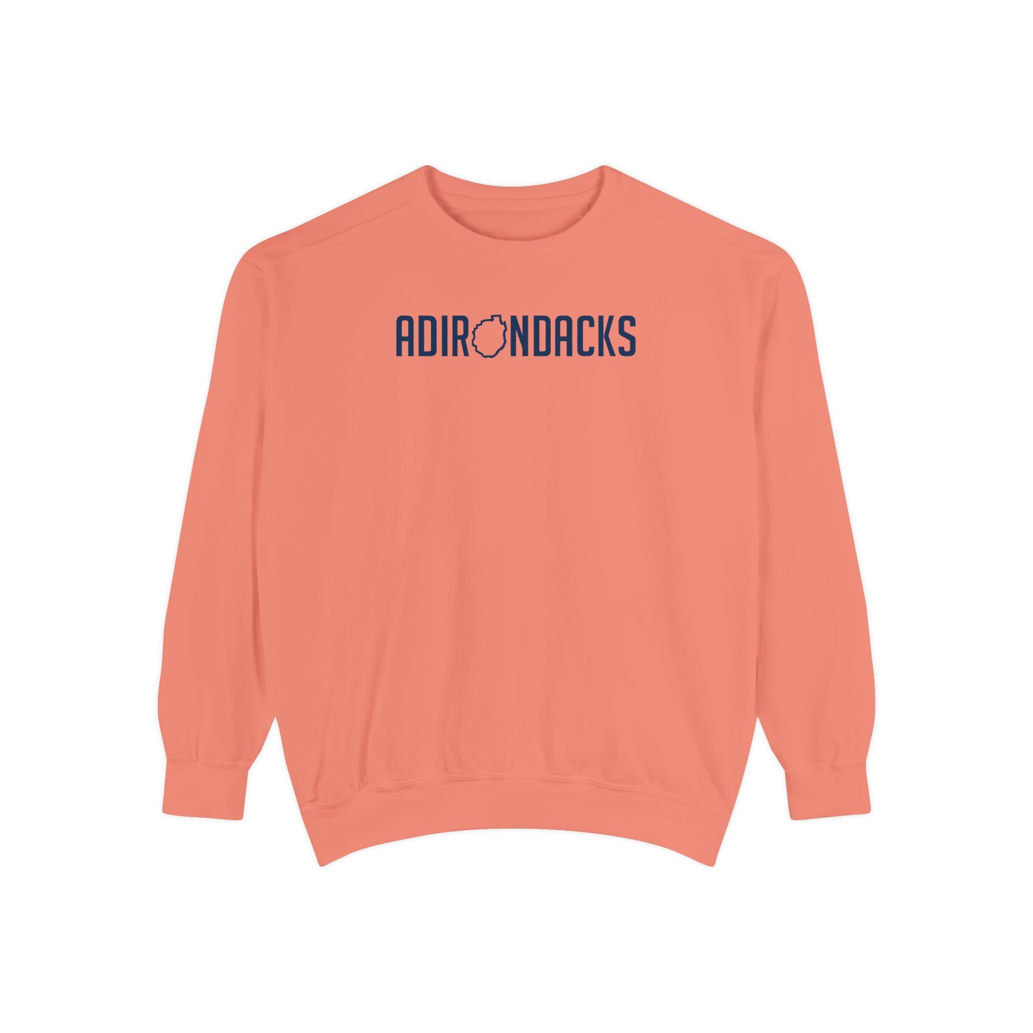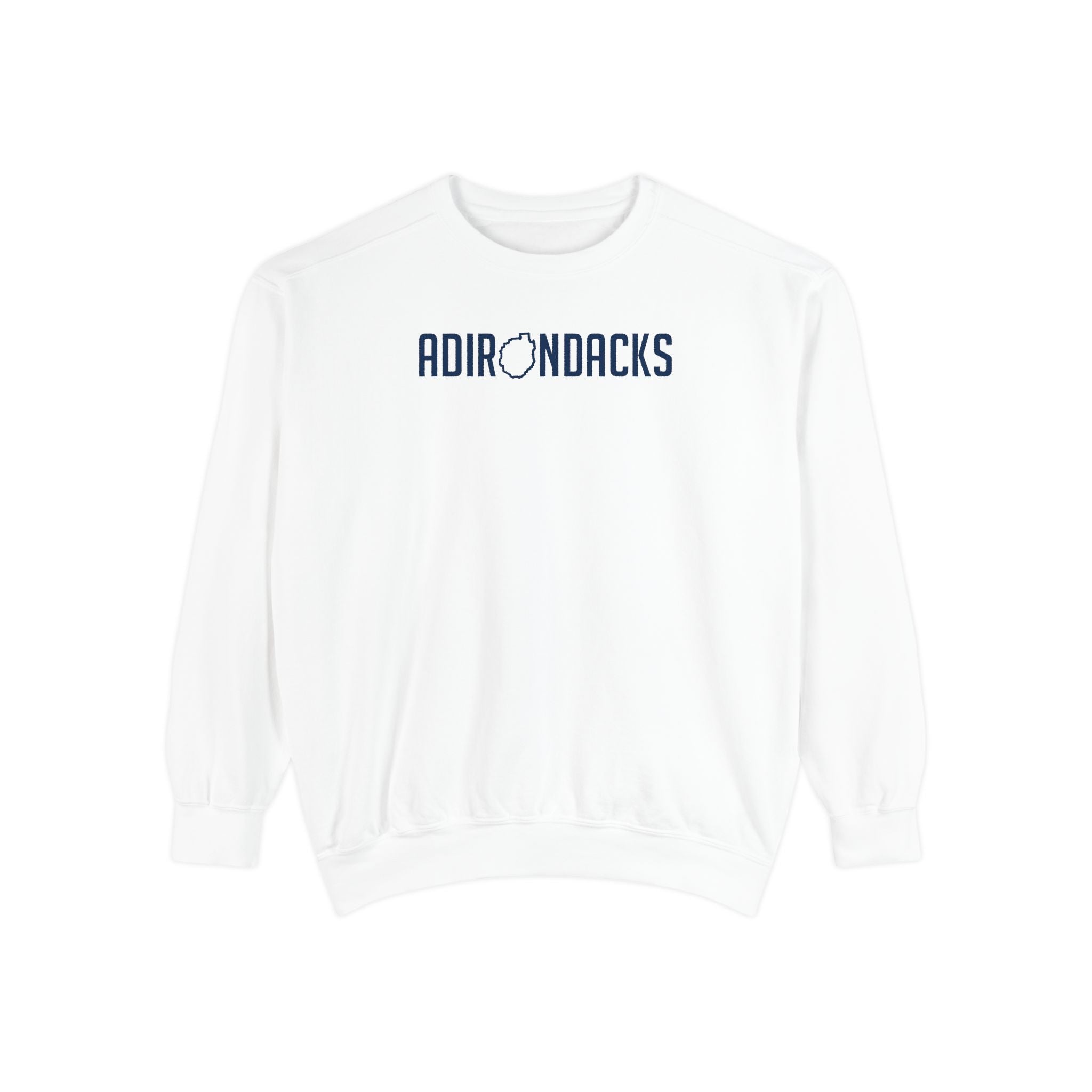 The front design says Adirondacks with the "O" as the shape of the park.
