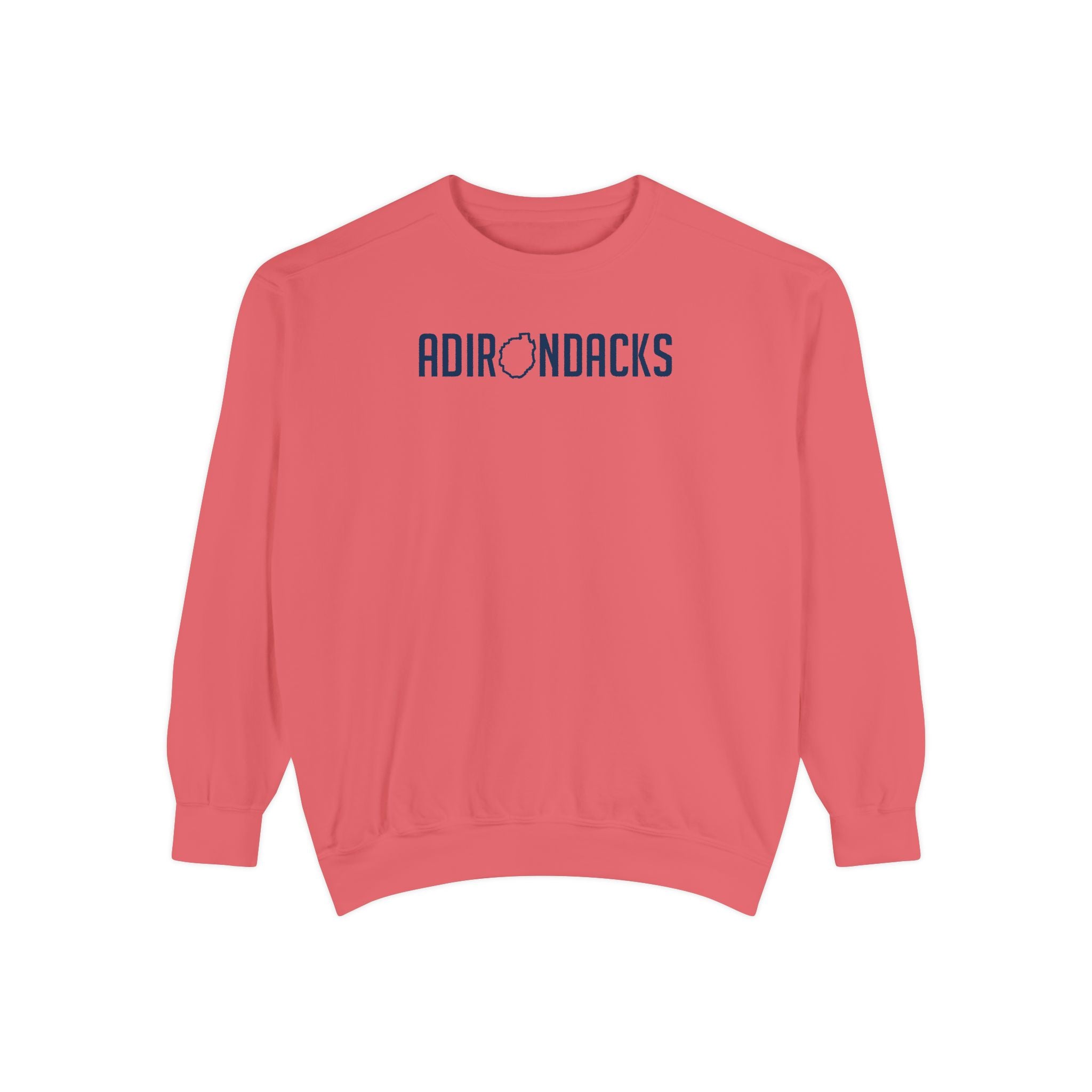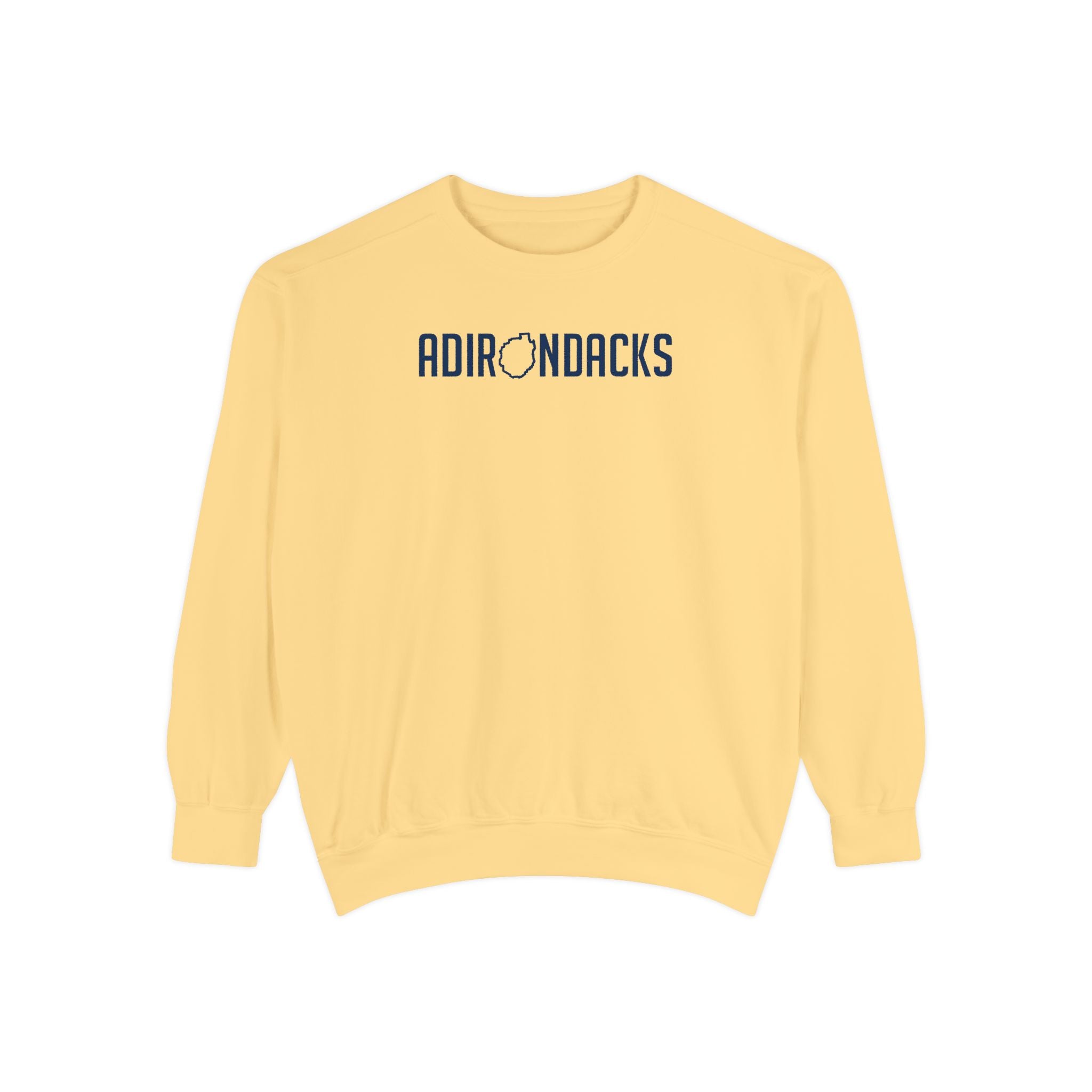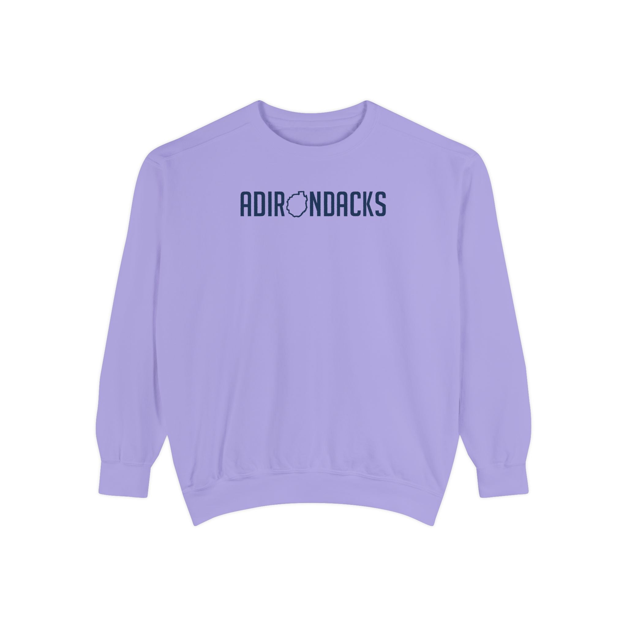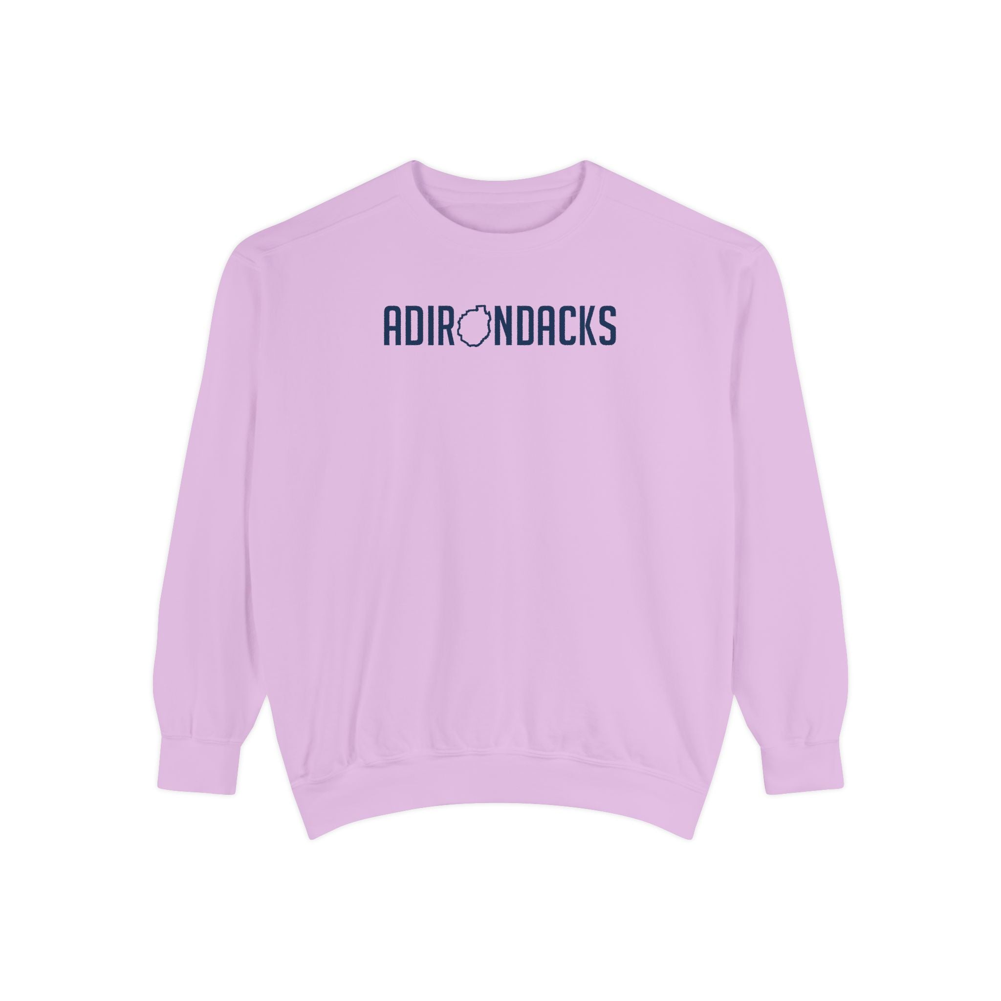 The front design says Adirondacks with the "O" as the shape of the park.