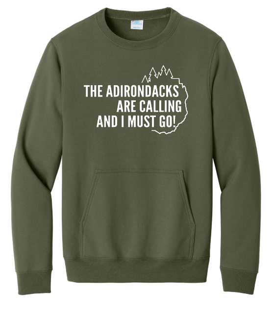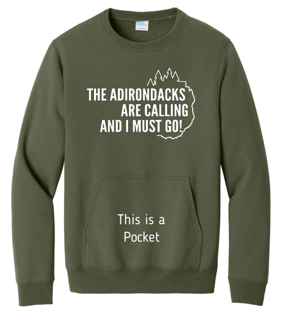 The Adirondacks are Calling and I must go! The comfort of a sweatshirt, convenience of a pocket without the weight of the hood!