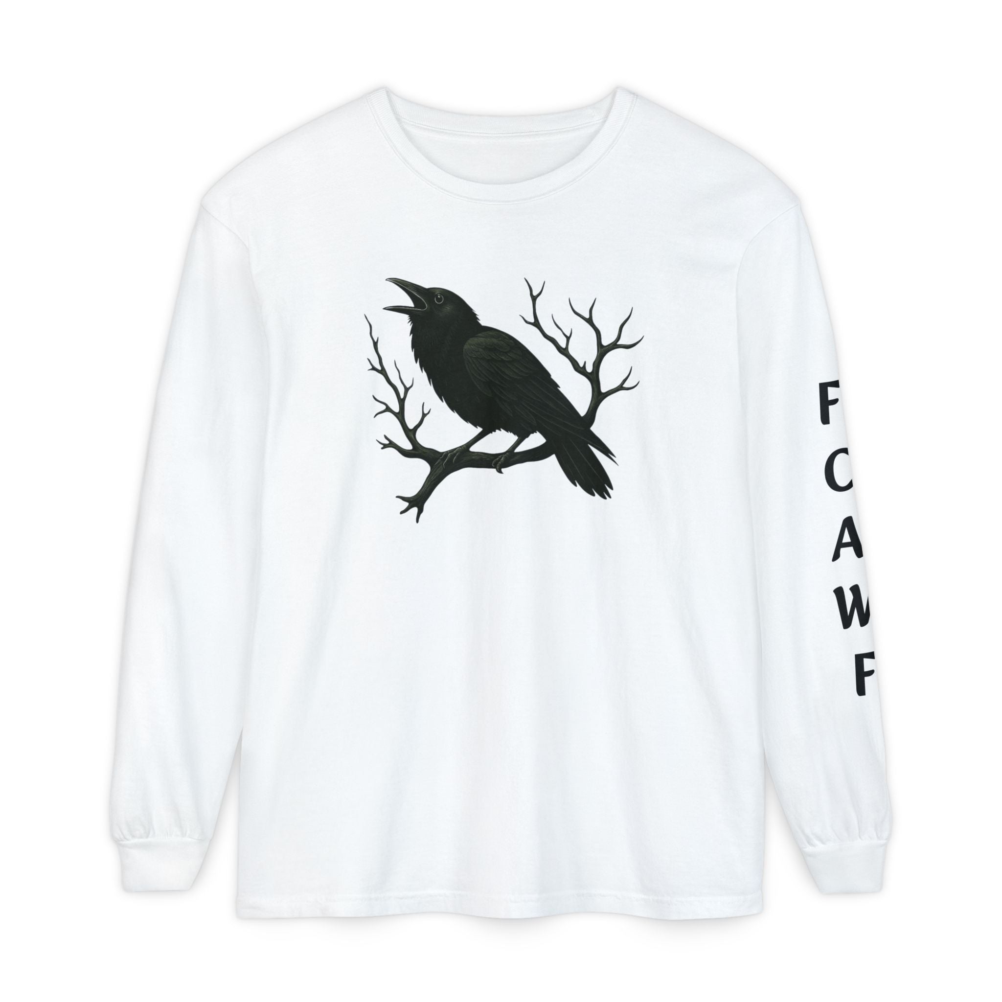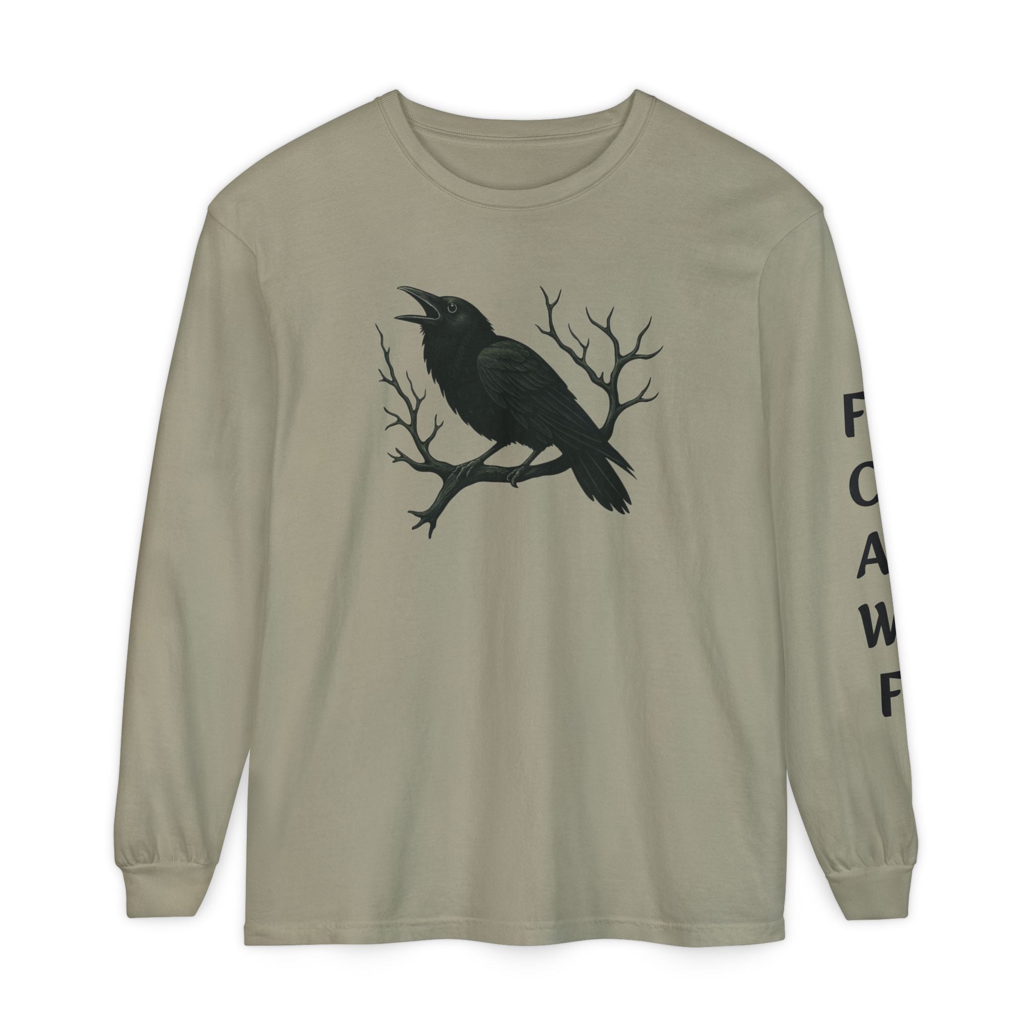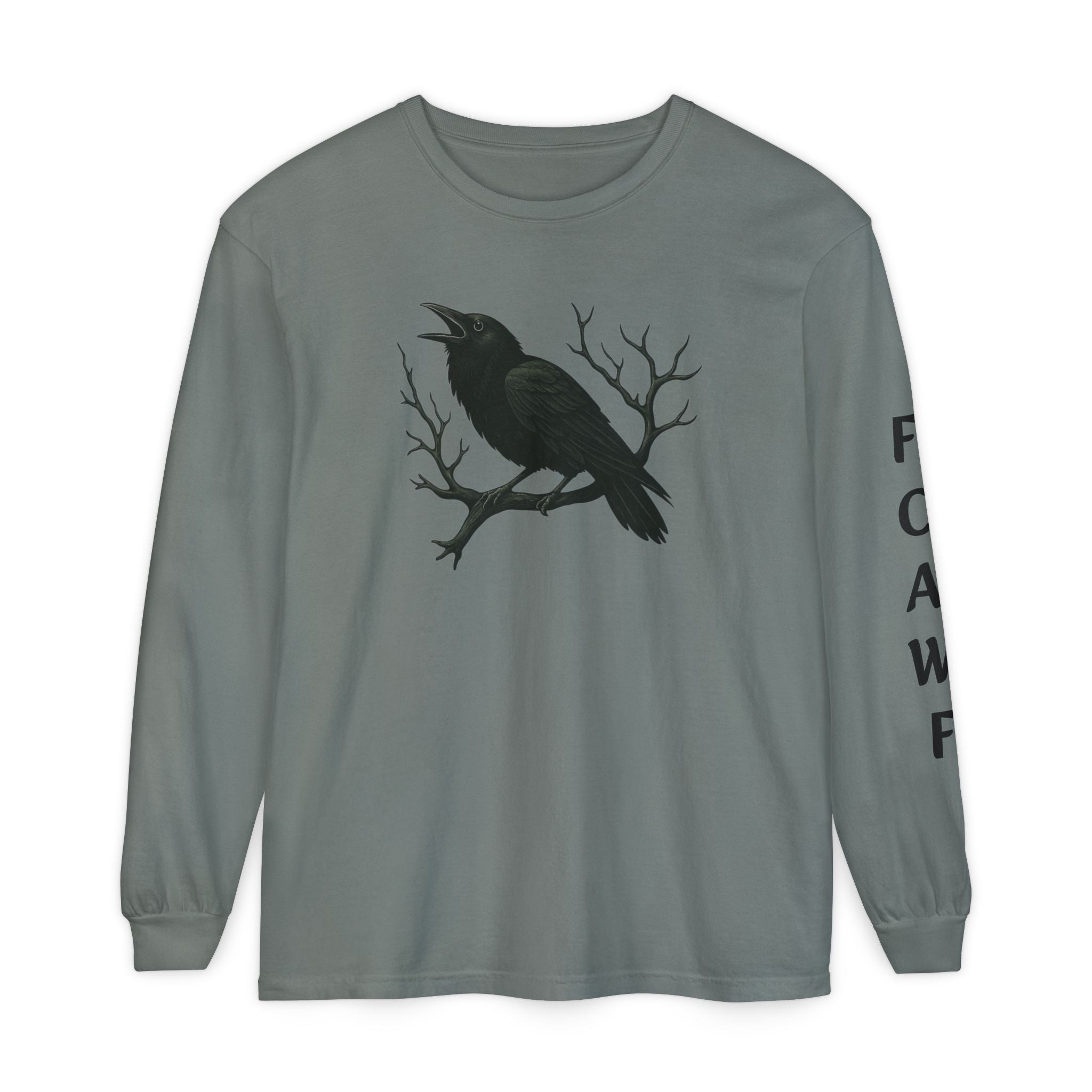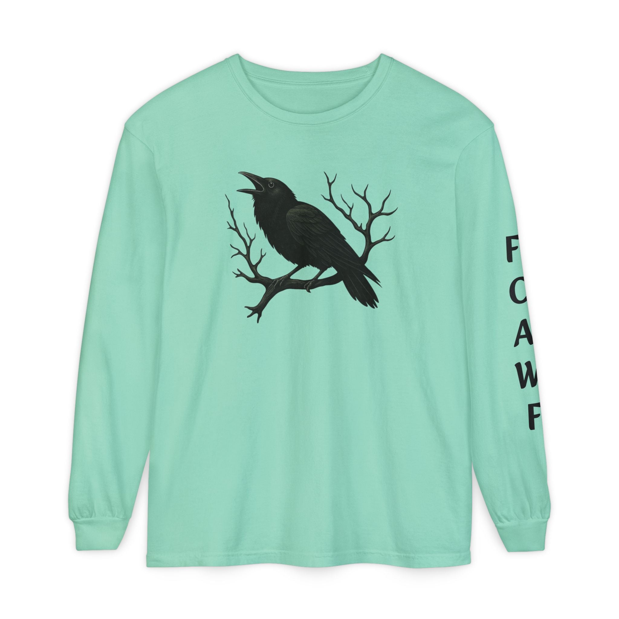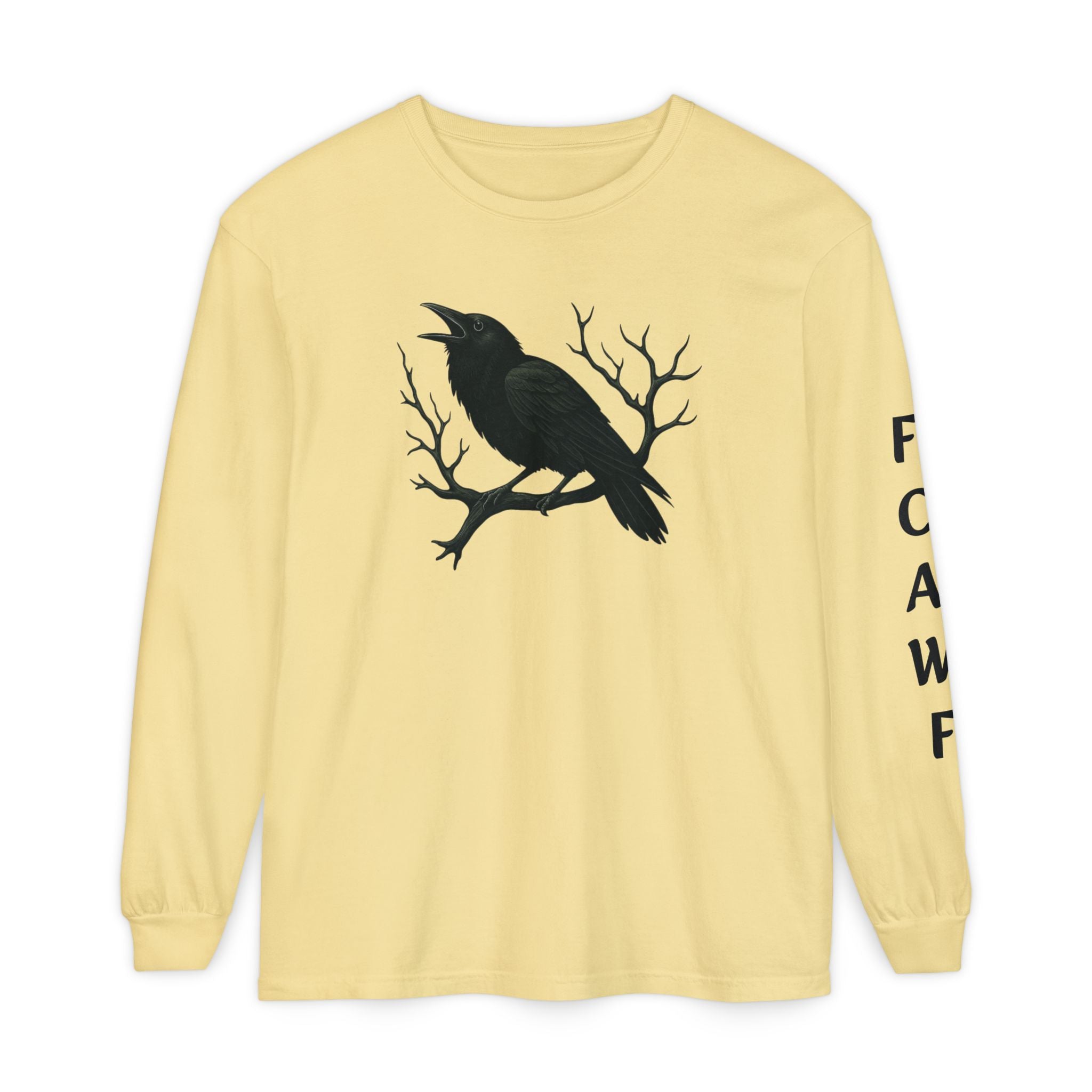 This Comfort Colors long sleeve is soft, roomy and lightweight. It feels both substantial and lived-in from the first wear — the ring-spun cotton is smooth against the skin and the ribbed cuffs hold shape through repeated wear.