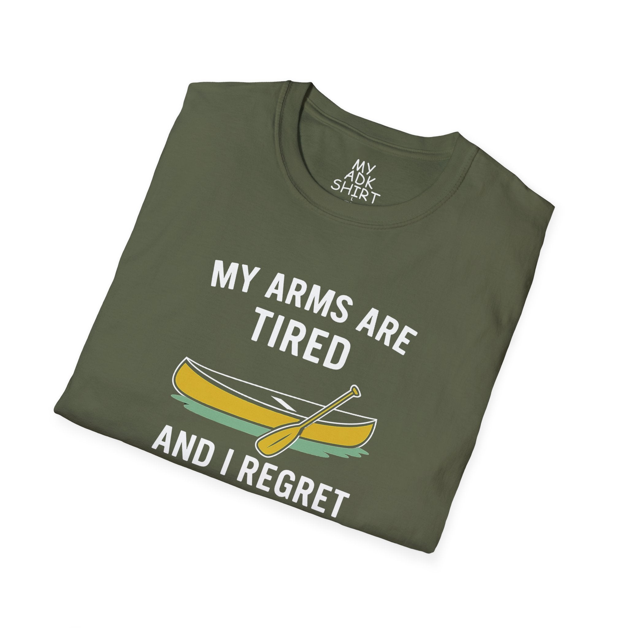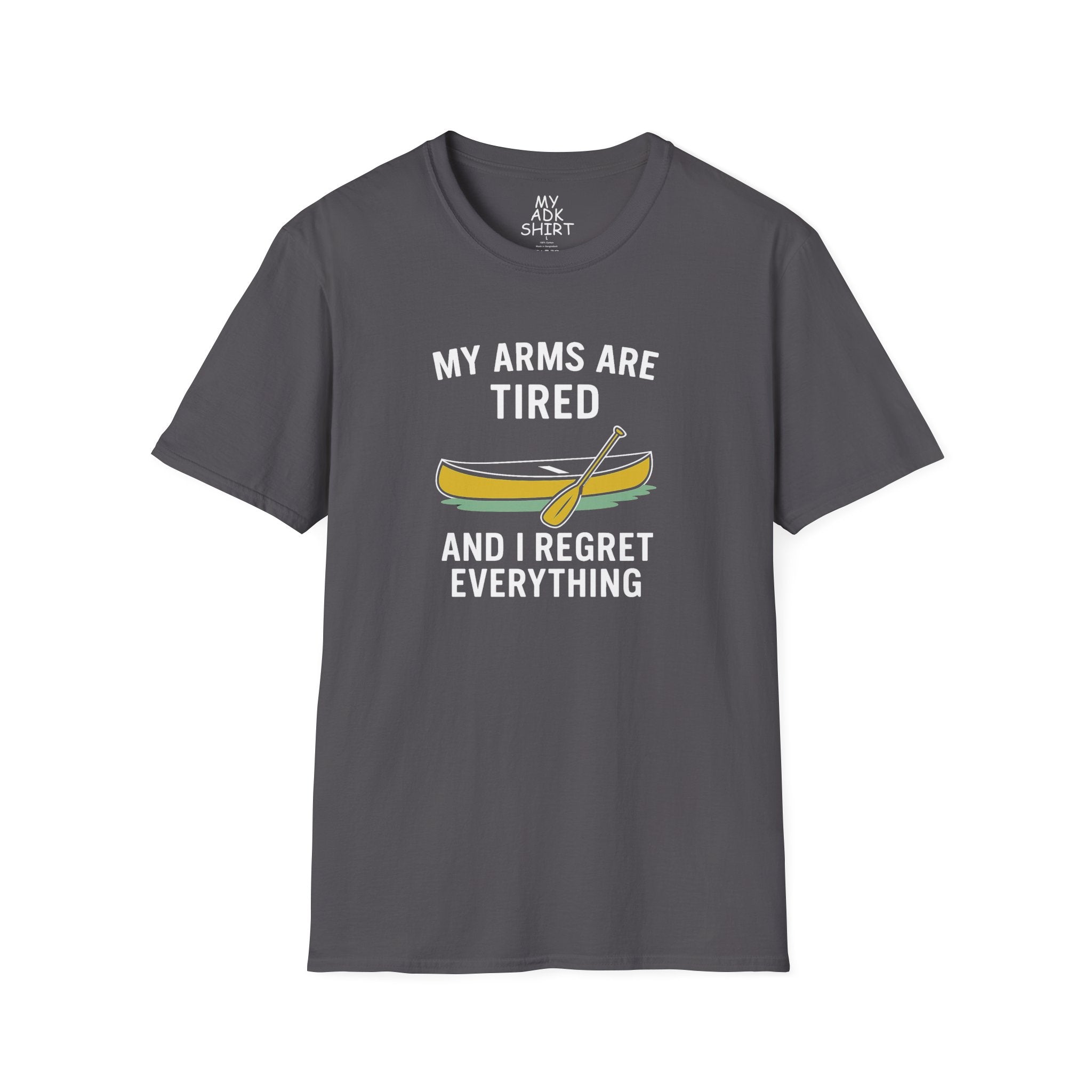 Light, breathable, and quietly funny — this soft cotton tee speaks to anyone who’s spent a day on the water and lived to tell the tale. The shirt carries a simple canoe illustration and the line “My arms are tired and I regret everything,” a nod to paddling, adventurous weekends, and the friendly ache that follows.