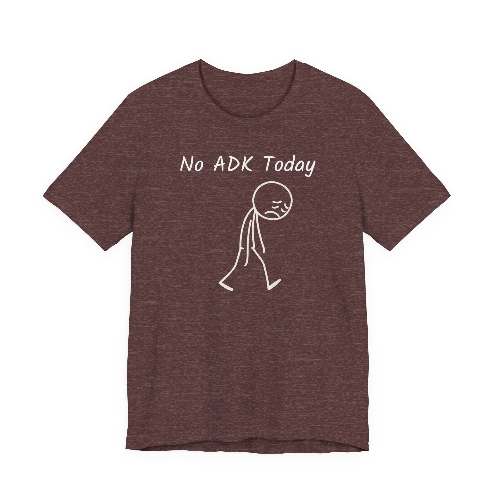 If this is how you feel when you're not in the Adirondacks, this shirt is for you. Lightweight, Bella+Canvas lived-in tee on soft Airlume cotton, a hand-drawn tired stick figure and the phrase “No ADK Today”.