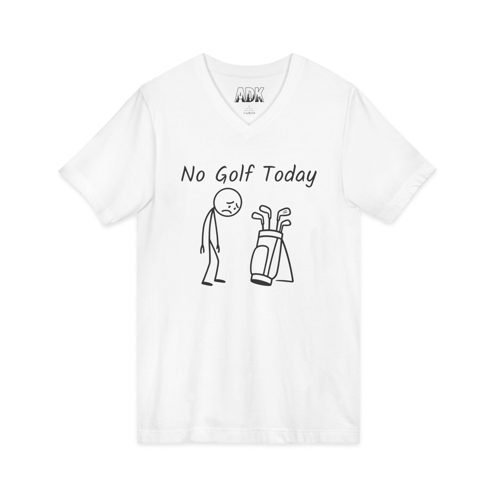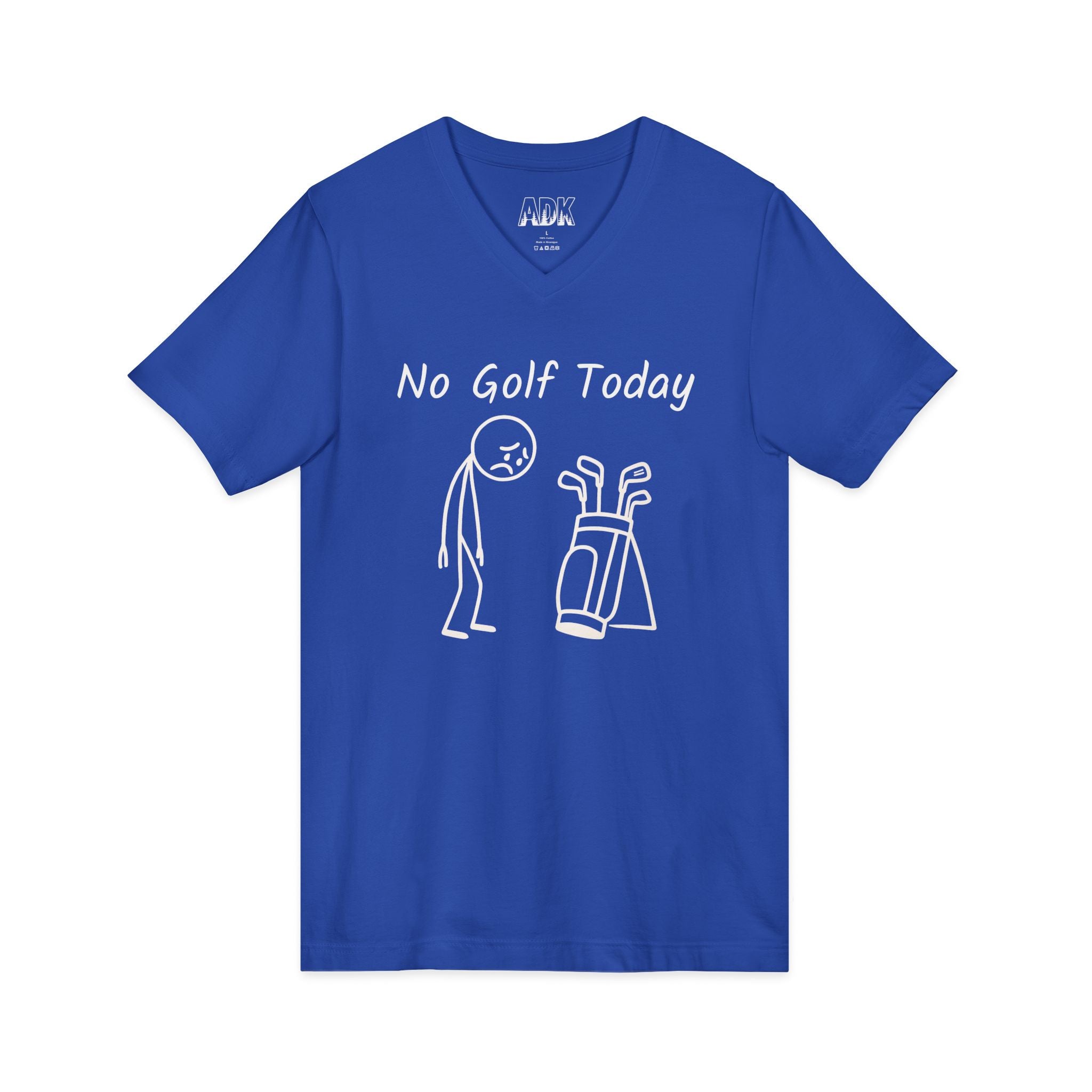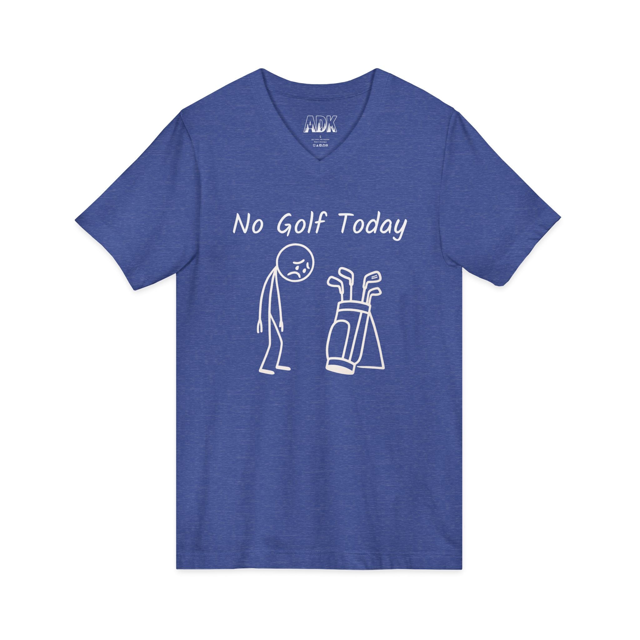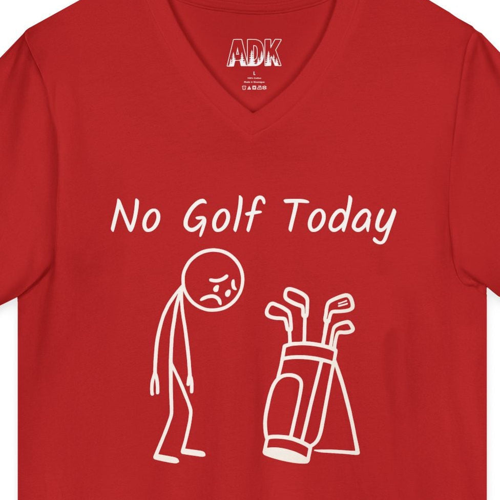 Front Design is No golf today with a sad stick figure with ADK with trees in the neckline.